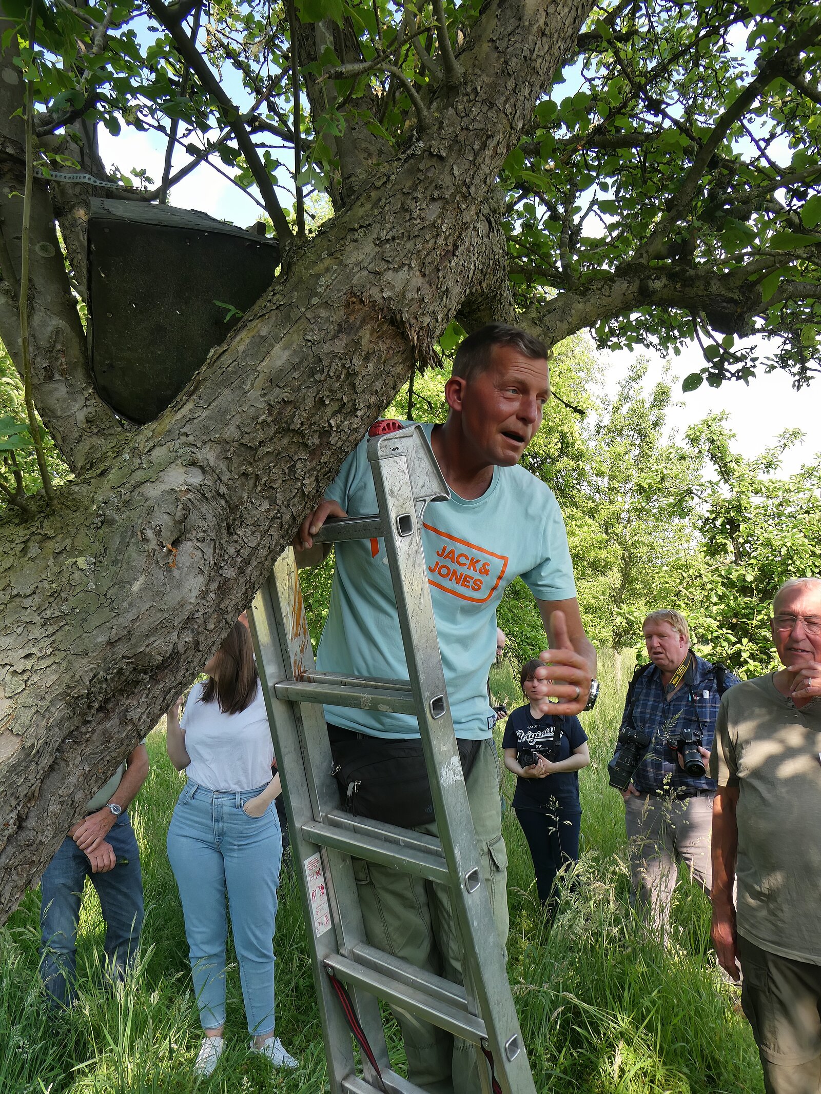 Unter fachlicher Begleitung des Naturschutzzentrums Kreis Coesfeld engagieren sich vor allem freiwillige Helferinnen und Helfer für den Erhalt des Steinkauzes. Sie bauen und montieren Niströhren an geeigneten Standorten – etwa in Obstwiesen, an Hofstellen oder in alten Baumreihen – und kontrollieren diese jährlich. Wo natürliche Bruthöhlen fehlen, bieten diese künstlichen Nisthilfen dem Steinkauz wertvolle Ersatzlebensräume.