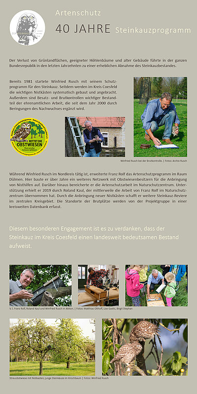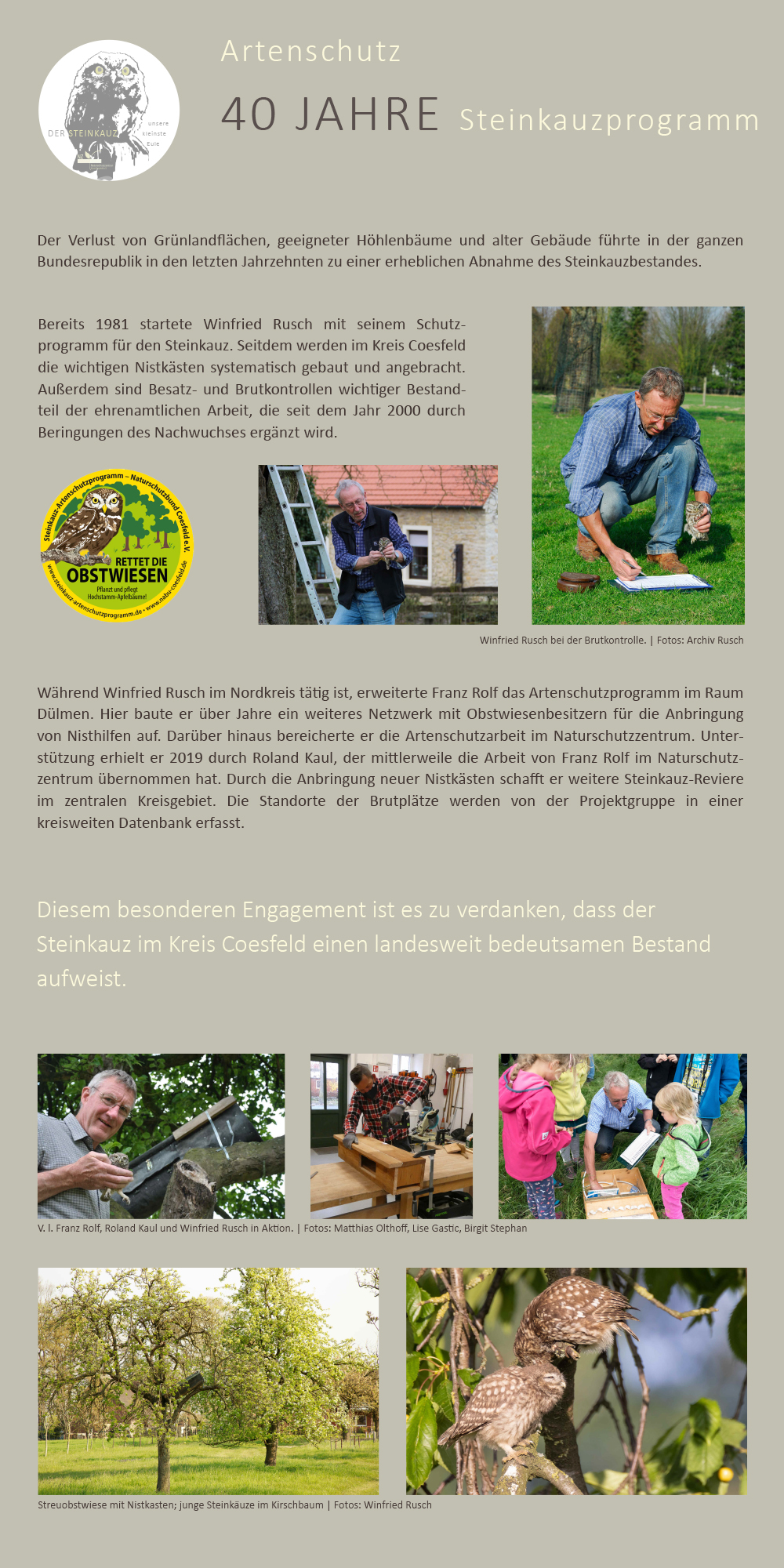 Anlässlich des 40. Jubiläums des Artenschutzprogramms „Steinkauz“, das von Winfried Rusch (NABU Coesfeld) 1981 ins Leben gerufen wurde