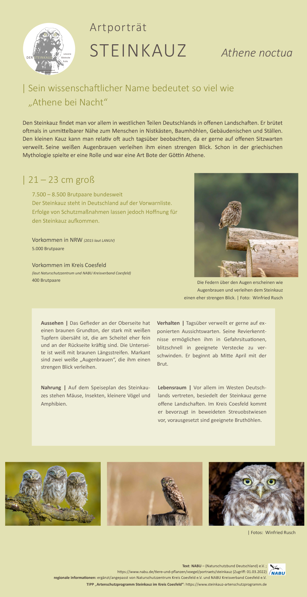 „Der Steinkauz – unsere kleinste Eule“ das lokale Engagement würdigt und den Lebensraum dieser faszinierenden Art erlebbar macht.