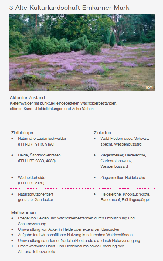 Basierend auf der langjährigen Gebietsbetreuung haben die Biologischen Stationen für die beiden Teilgebiete Borkenberge und Lavesum Naturschutzzielkarten entwickelt. Hierin werden auf Grundlage der hohen naturschutzfachlichen Wertigkeit des Gebietes Vorschläge für die Entwicklung von Zielbiotopen und Zielarten gemacht..