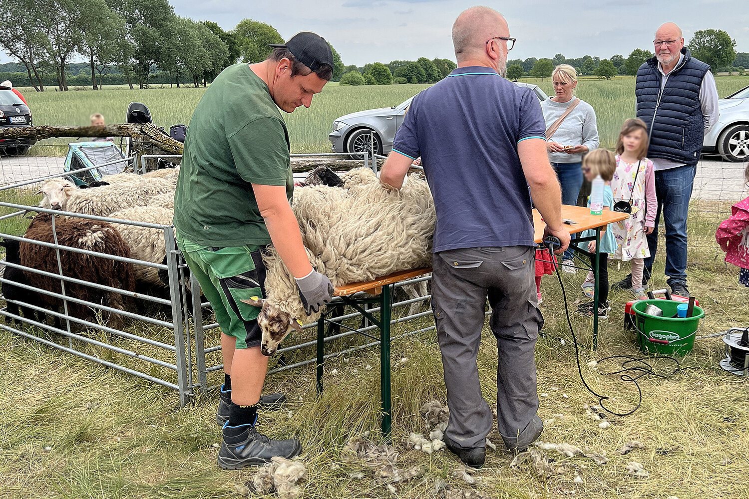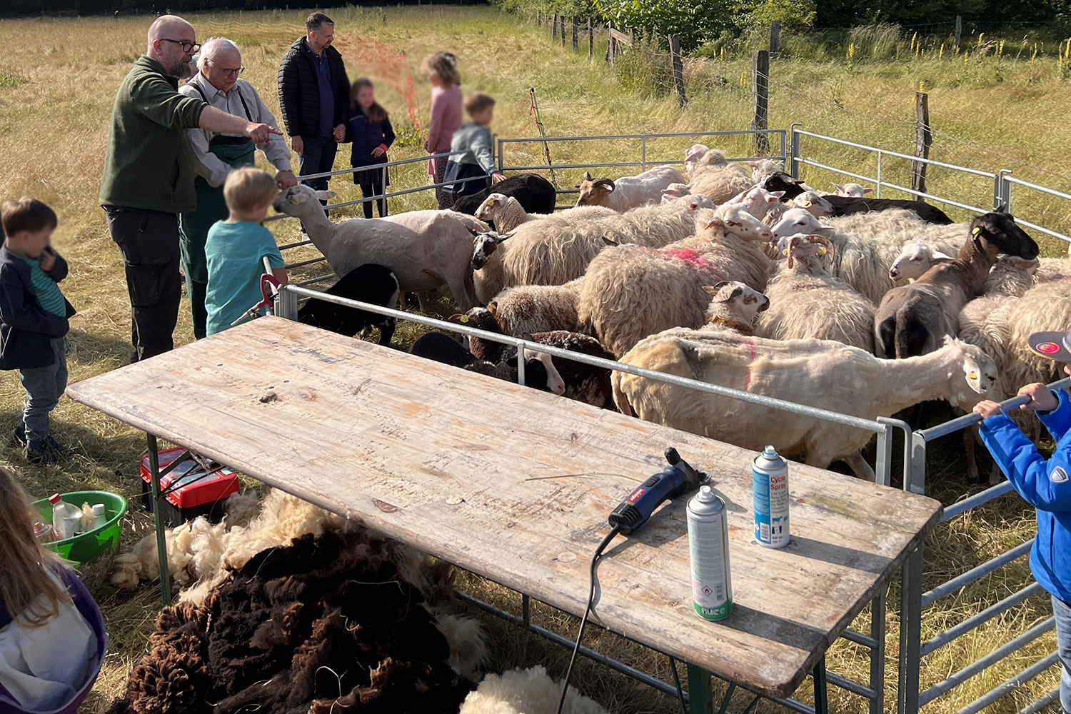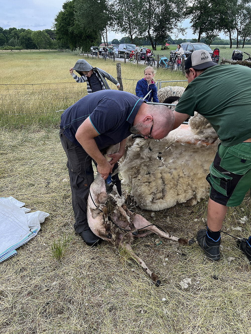 Anschließend geht es zur eigentlichen Schur: Der Schäfer schert vor den Besucherinnen und Besuchern zwei bis drei Schafe und gibt dabei spannende Einblicke in sein Handwerk. Die frisch geschorene Wolle darf von den Gästen mitgenommen werden.