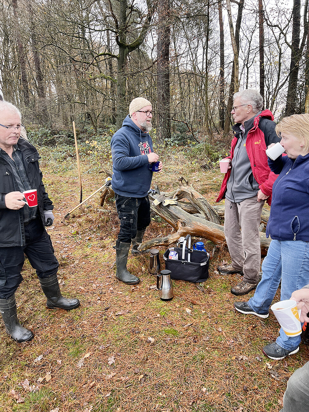 Neben der praktischen Naturschutzarbeit kommt auch das Miteinander nicht zu kurz: Zur Mittagszeit versammeln sich alle helfenden Hände in der Pausenhütte oder im Heimathaus Lette. Dort warten eine leckere Suppe und kühle Getränke – eine schöne Gelegenheit zum Austausch und zur Stärkung nach getaner Arbeit.