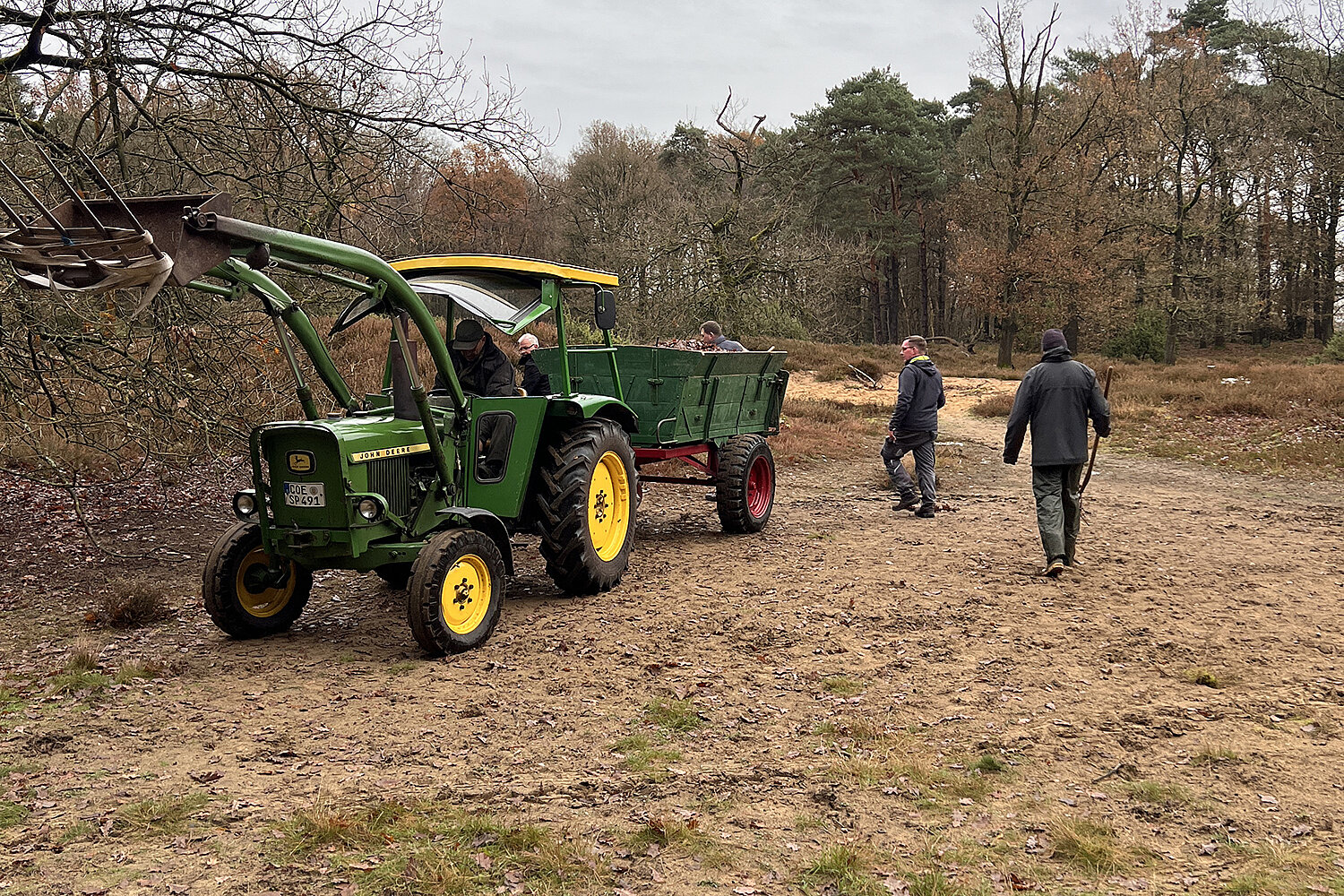 Im Rahmen des Pflegeeinsatzes wird jedes Jahr ein Teil der alten Heide gemäht und das Mahdgut abgetragen. Außerdem werden Störzeiger wie Brombeeren und der Jungaufwuchs von Birke und Kiefer entfernt. Zudem werden offene Bodenstellen geschaffen, die wichtig für lichtliebende Tier- und Pflanzenarten sind.