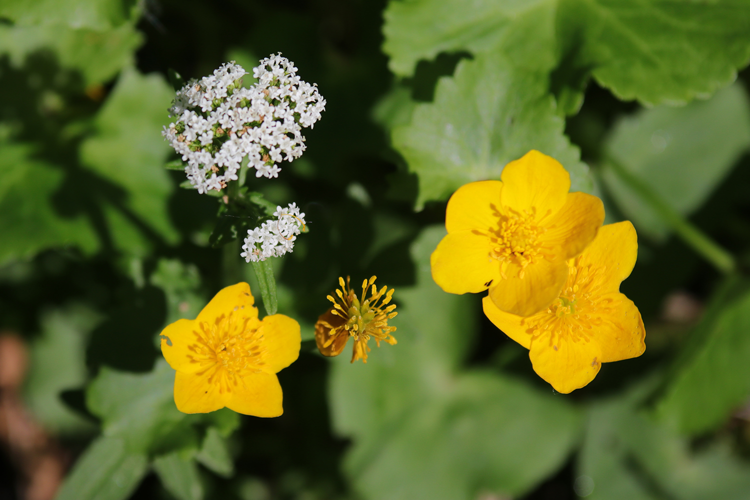 Im Frühjahr zeigt sich der naturnahe Erlenbruchwald (Alnetum glutinosae) entlang des Sand-Quellbaches mit seinem gelben Blütenteppich aus Sumpf-Dotterblumen (Caltha palustris) von seiner schönsten Seite. Auf dem staunassen Gleyboden sind in den zahlreichen Senken Teppiche mit Aufrechtem Merk (Berula erecta) ausgebildet.