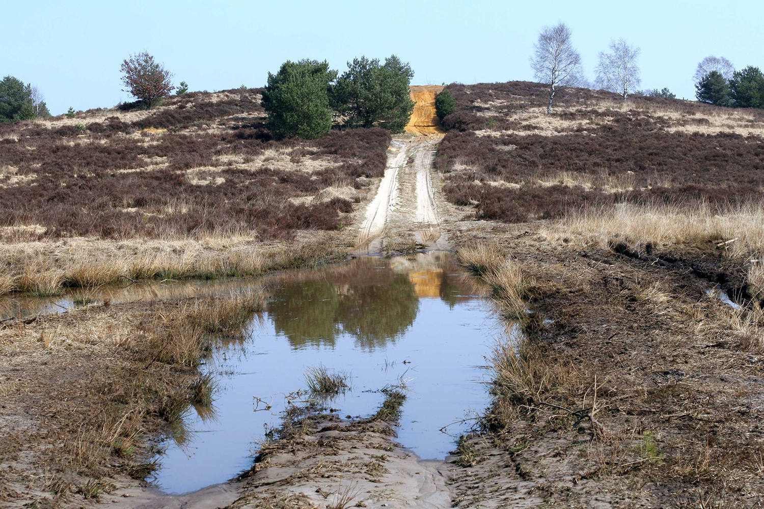 Was aber ist die Ursache dafür, dass zahlreiche hoch gefährdete Arten und Lebensräume auf militärischen Übungsplätzen wie den Borkenbergen vertreten, außerhalb dieser jedoch nahezu verschwunden sind? Ein wesentlicher Grund ist - neben dem Vorhandensein großflächiger, ungedüngter Lebensräume - die militärische Nutzung. Diese schafft durch das Befahren mit Kettenfahrzeugen ein Netz offener Sandwege und trägt durch gezielte Pflegemaßnahmen sowie spontane Brände zur Offenhaltung der Heideflächen bei.