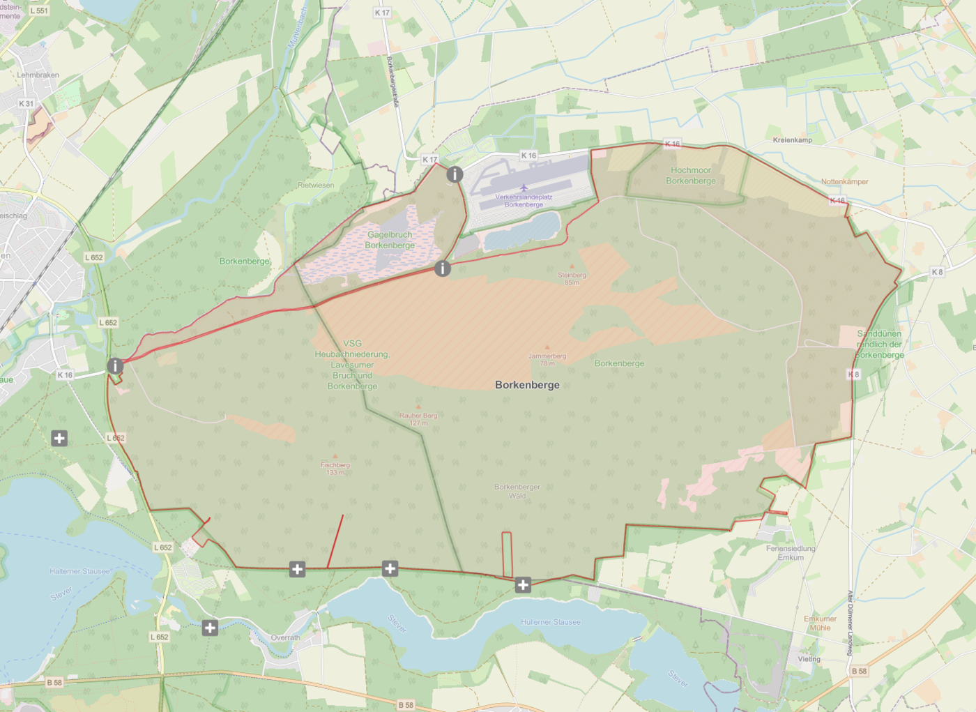 Die Borkenberge beinhalten Gebiete mit unterschiedlichem Schutzstatus: