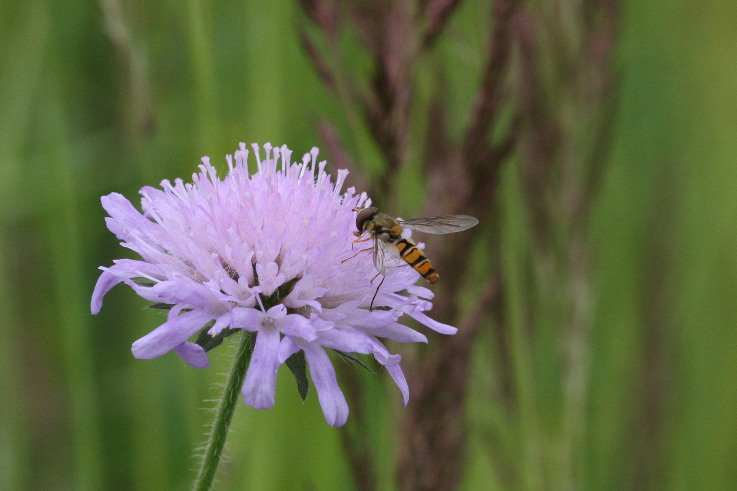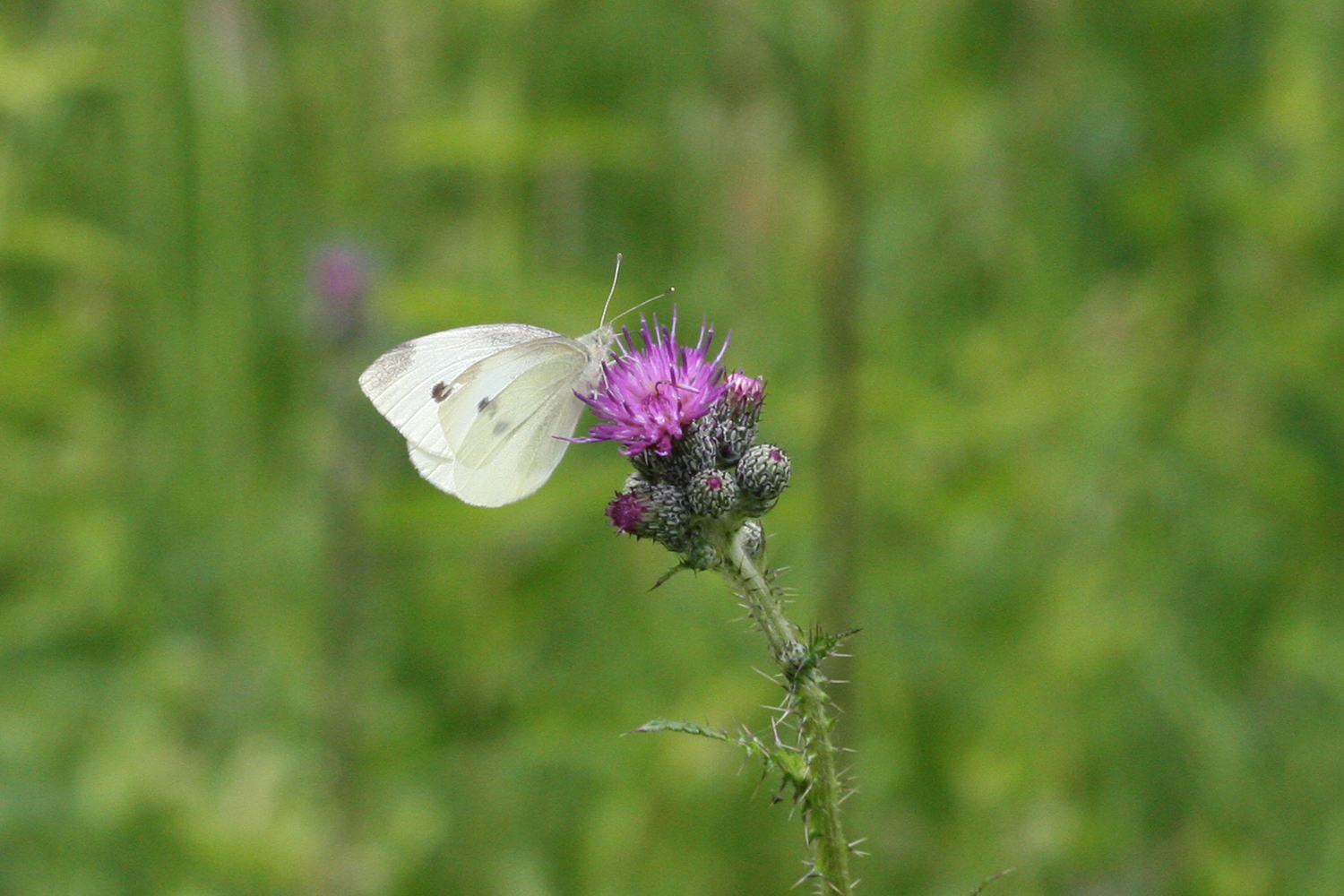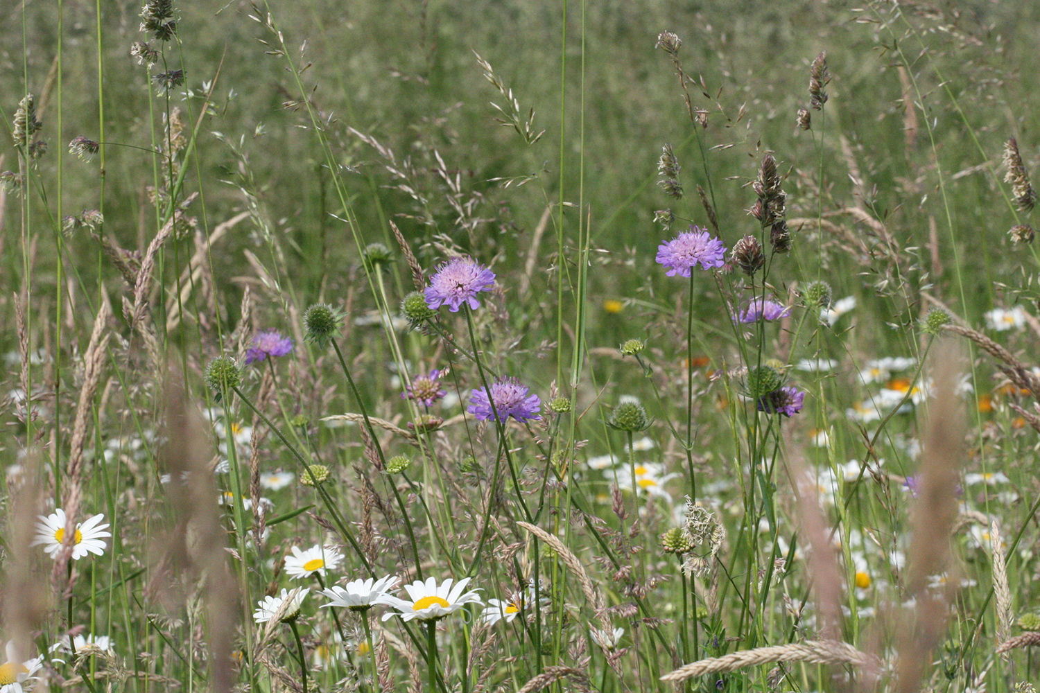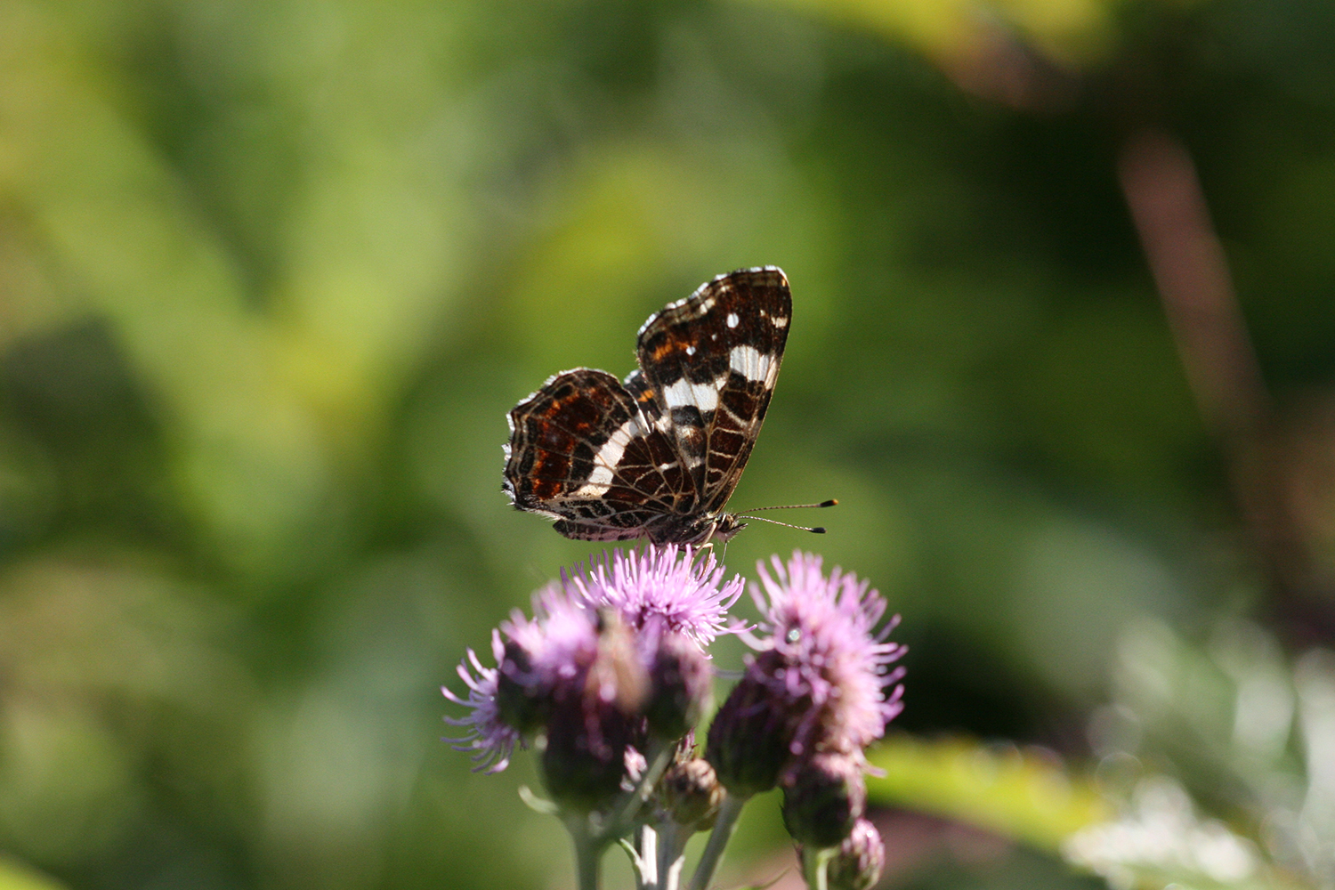 An blütenreichen Säumen fliegen Schmetterlinge wie C-Falter (Polygoniac-album) und Nierenfleck (Thecla betulae).