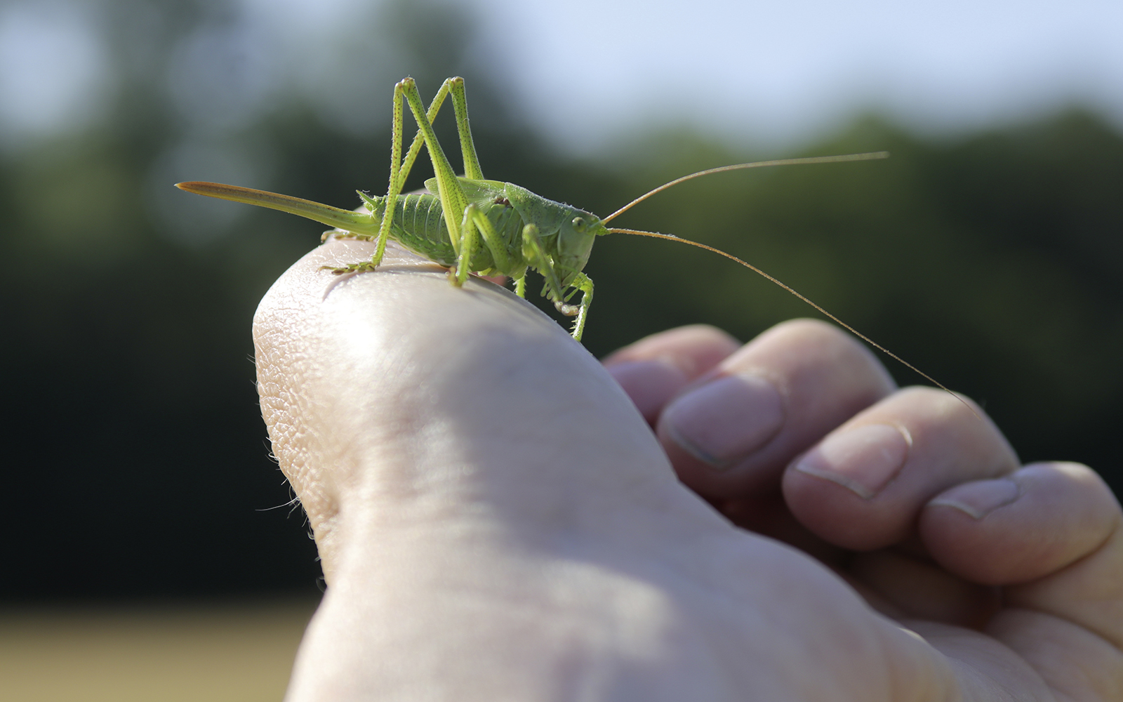 - Langflügelige und Kurzflügelige Schwertschrecke (Conocephalus discolor / C. dorsalis)