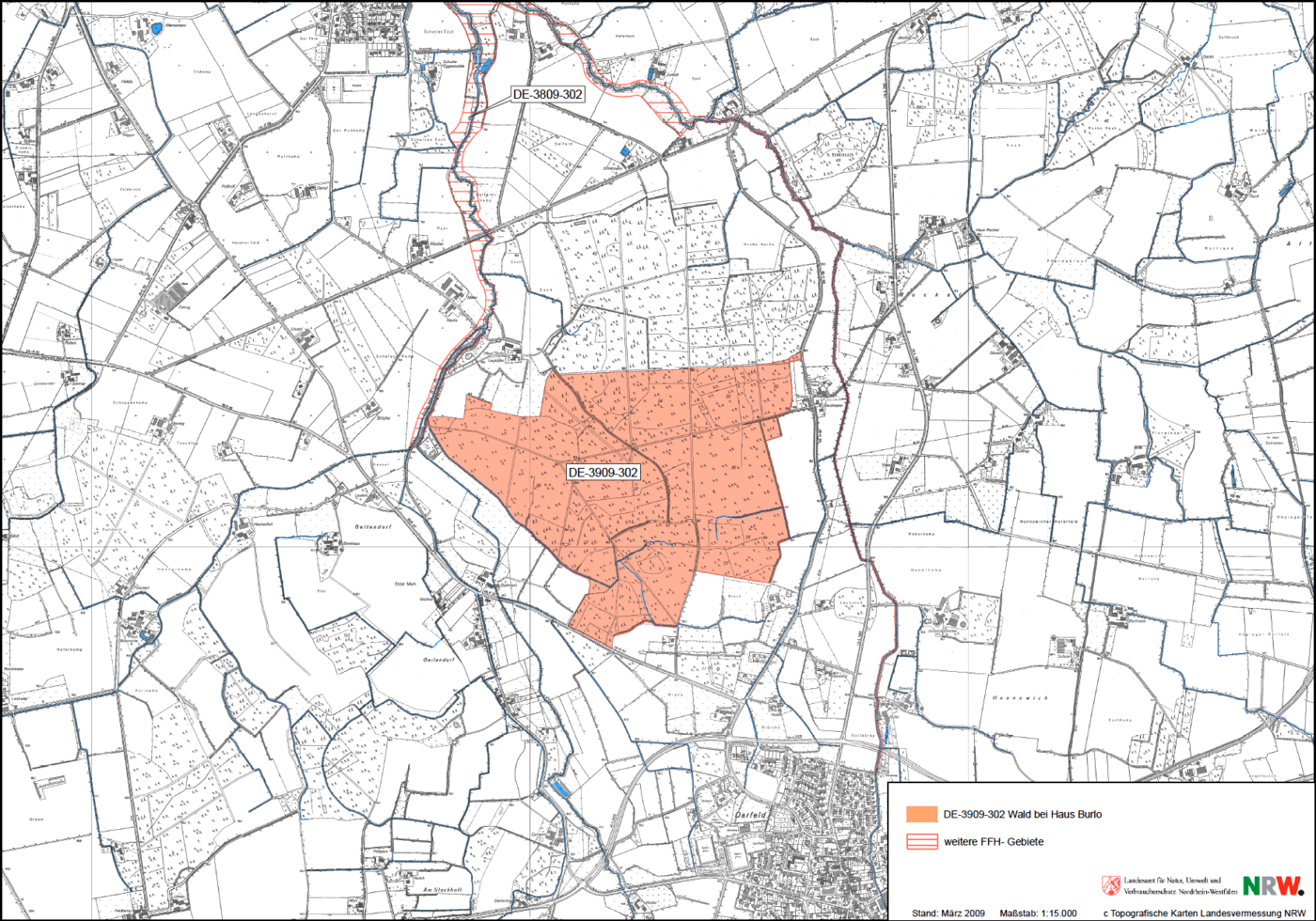 Schutzstatus: Naturschutzgebiet (NSG) und Teil des FFH-Gebiets „Wald bei Haus Burlo“ (DE-3909-302)