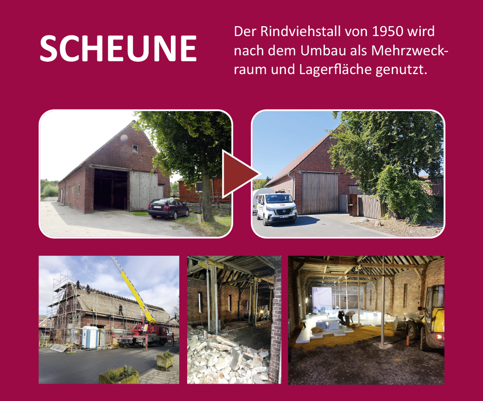 Der ehemalige Bauernhof wurde gemeinsam mit dem IBP e. V. und der Daruper Bürgergenossenschaft e. G. zu einem lebendigen Zentrum für Dorfleben, Bildung und Natur umgewandelt. Heute bietet das Gelände vielfältige Angebote mit regionaler und überregionaler Strahlkraft.